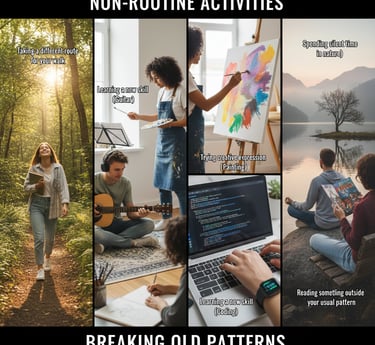 Introducing new, non-routine activities helps interrupt these old pathways.