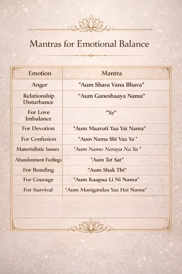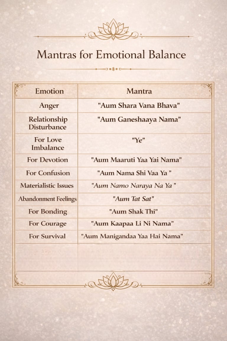 Choose the appropriate Mantra from the following table and chant the relevant Mantra for a minimum of 5 minutes.